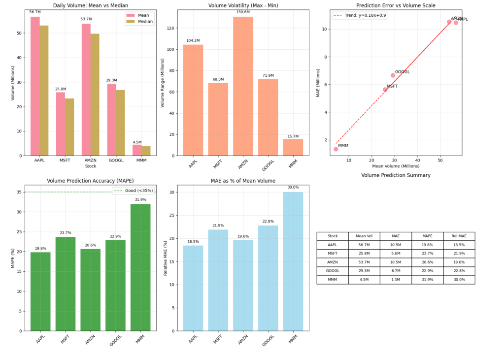 - 19.8% to 31.9% MAPE, reflecting volume’s inherent volatility and noise