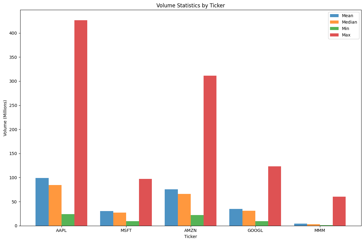 We can see that volume differs across tickers. This will be important for training and incorporating volume-aware loss.